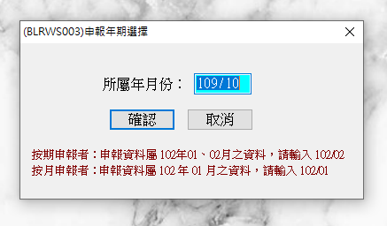 「開立年月即申報月份的前一月」例如,在11/15前申報 9-10月 401 報表,就輸入109/10