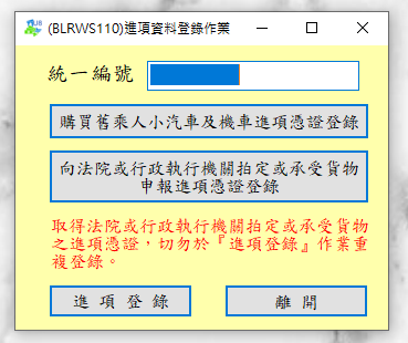 輸入統編,先按「營業人購買發票登錄」登錄購買的發票號
