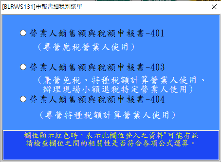 勾選「營業人銷售額與稅額申報書」- 401