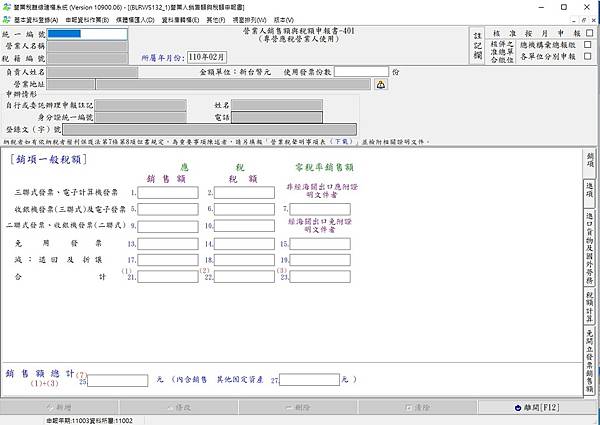 *銷售金額填總額,營業稅額填 0,之後系統會自動帶出稅額