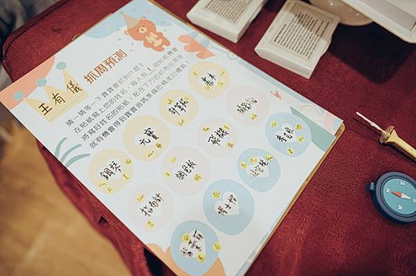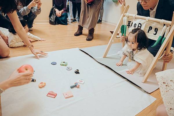 之前參加過的抓周派對大多只有針對寶寶抓物品,這次的抓週到府主持人的流程規劃下,長輩、朋友都能一起玩的盡興